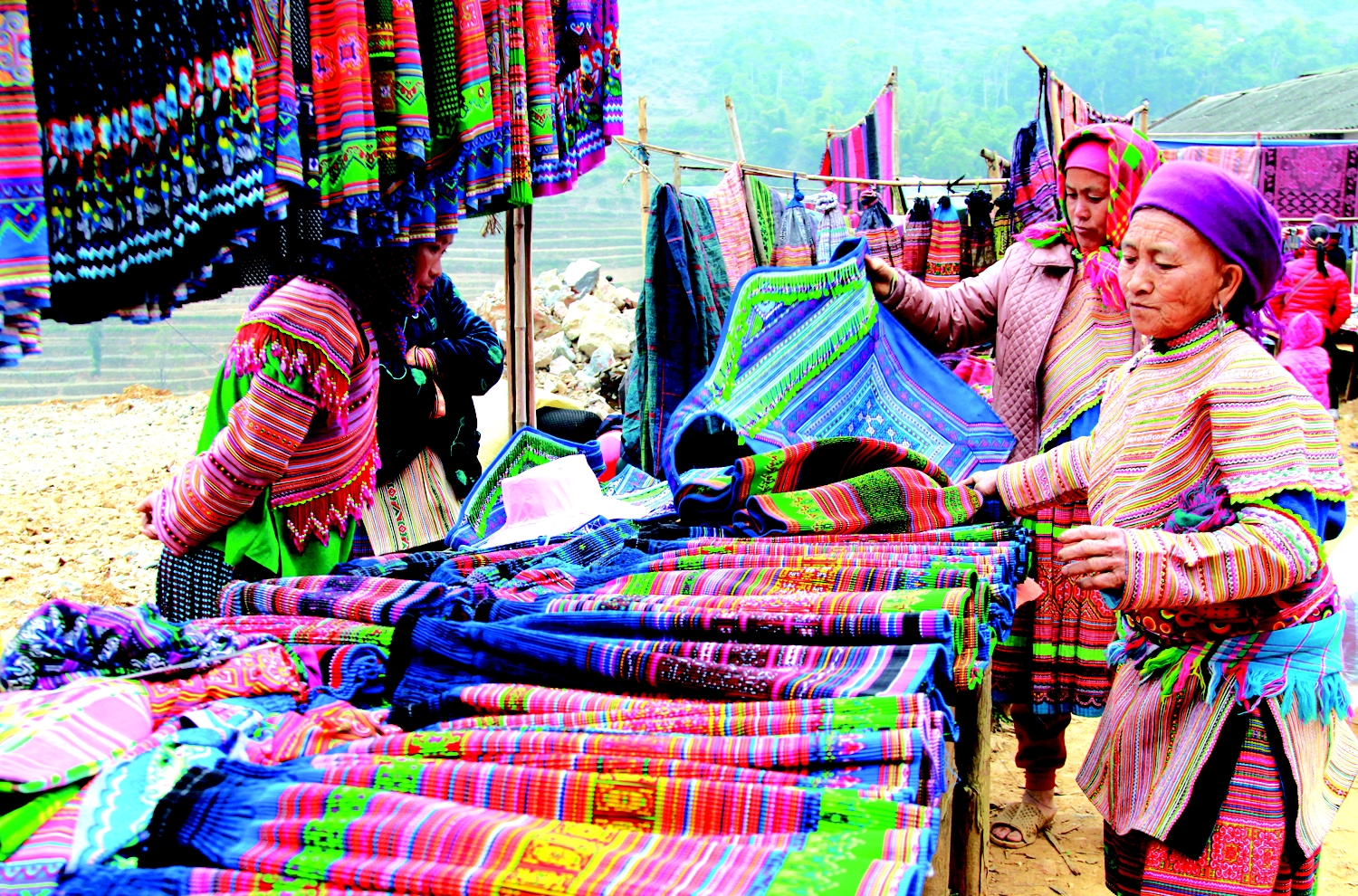 It was a cold, misty Sunday morning when I arrived in Si Ma Cai, a small town perched high on the border between Vietnam and China. As the sun slowly pierced through the fog, the hills revealed themselves — terraced rice fields, corn patches, and tiny houses clinging to the slopes. Along the winding road, groups of H’mong, Nùng, and Phù Lá women walked gracefully, carrying baskets filled with vegetables, chickens, or colorful fabrics. All were heading toward the market.